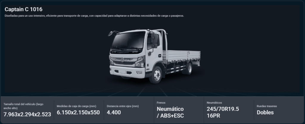 Captain C 1016 Máxima calidad y mayor capacidad en un solo camión. Ficha Técnica